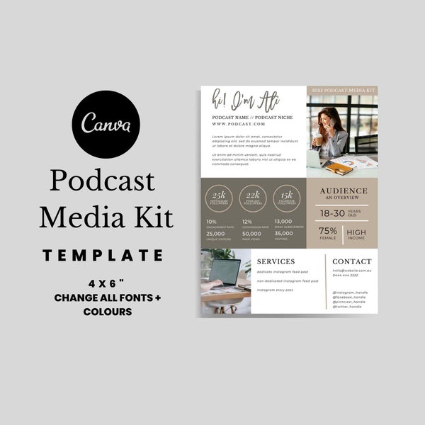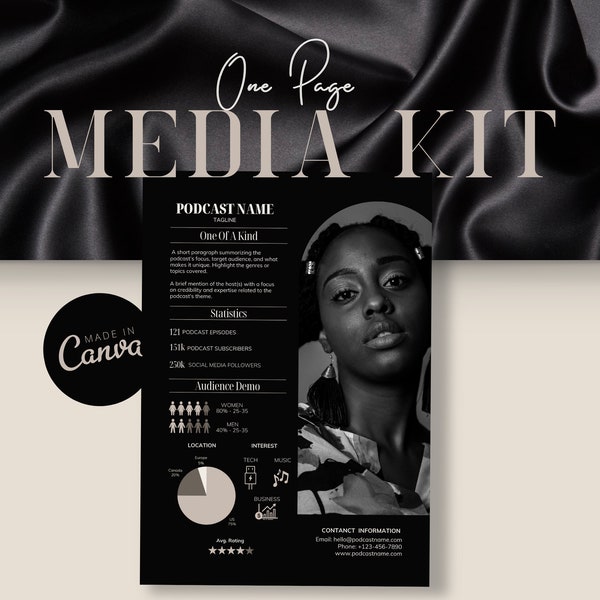 Podcast MEDIA KIT Template Editable Canva Press Kit Business Etsy