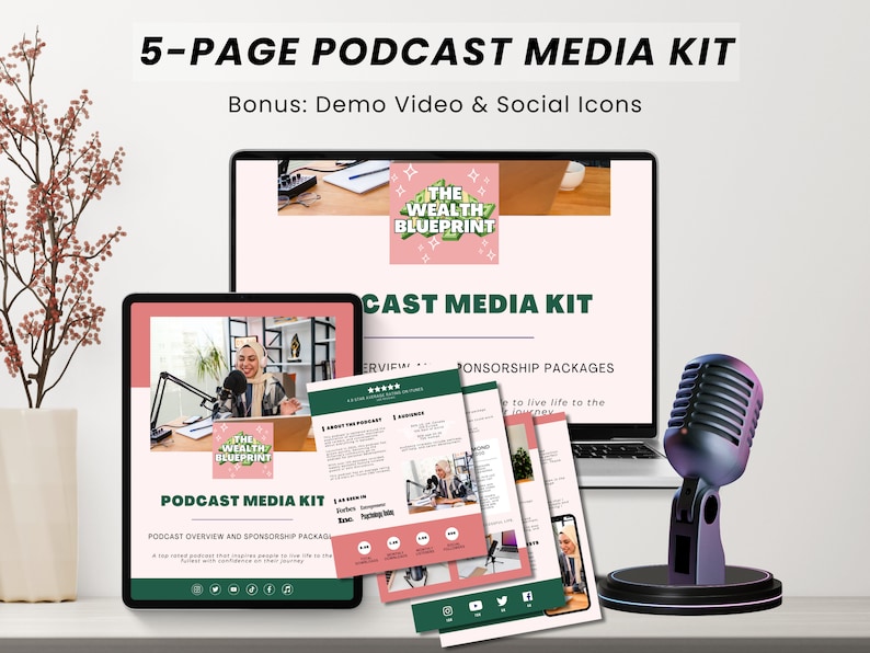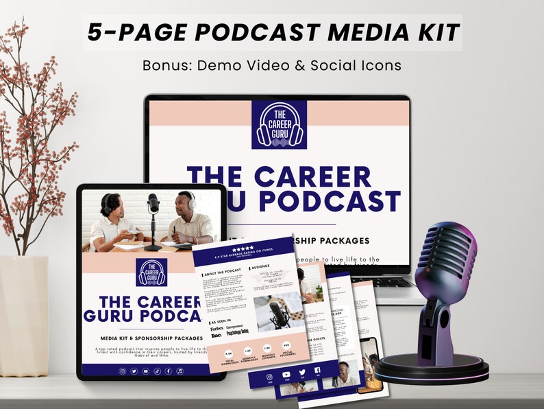 5 Page Podcast Media Kit Canva Template Podcast Press Kit Etsy
