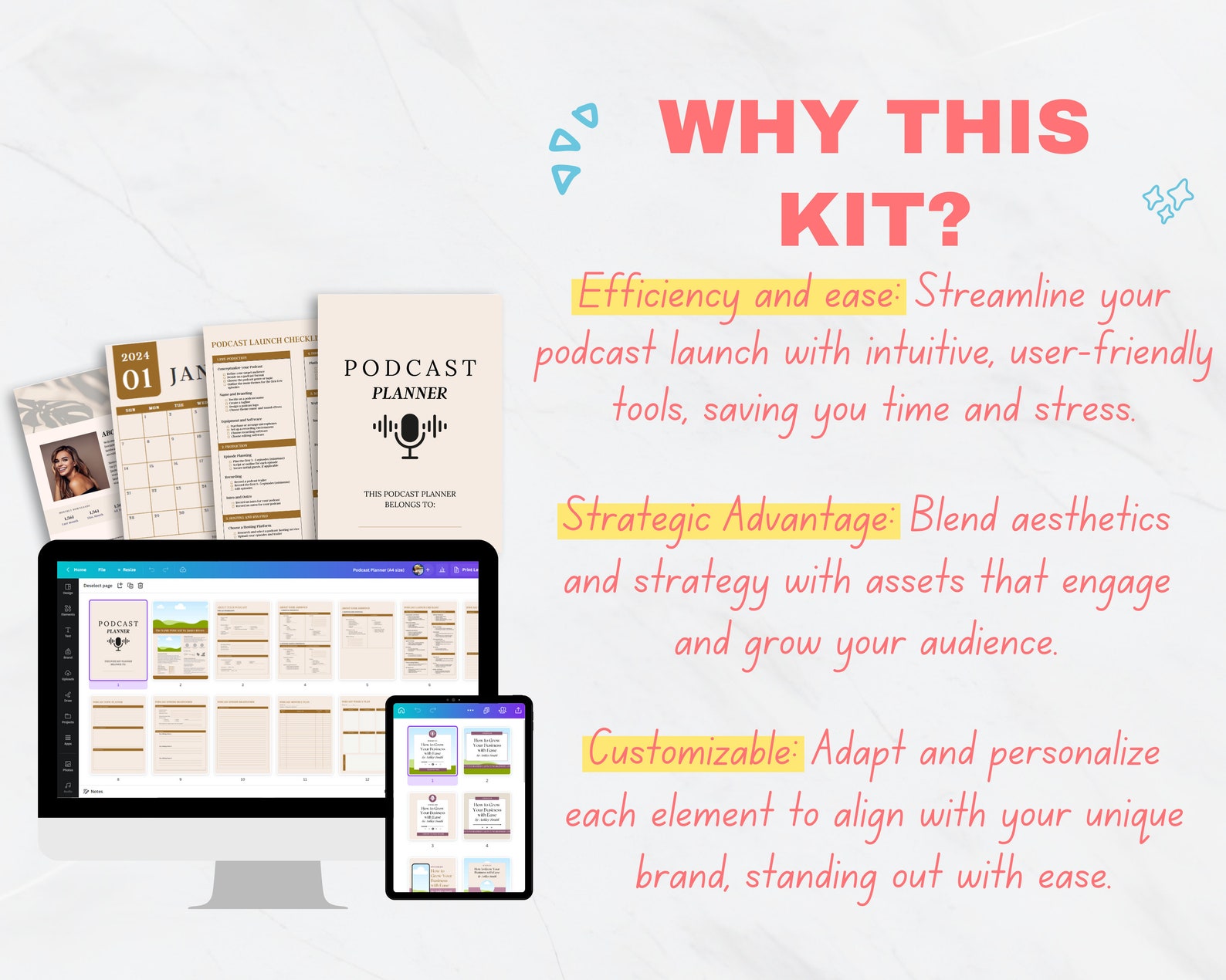 15 Editable Podcast Planner Bundle Pack Podcast Template Content