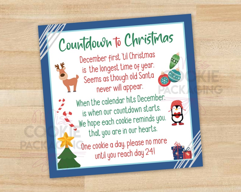 24 Day Navy Blue Cookie Advent Calendar POEM printable File Etsy