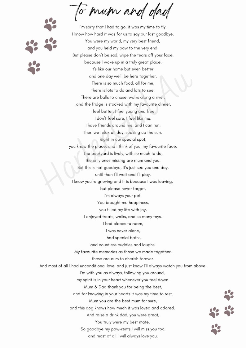 Pet Loss Poem Etsy