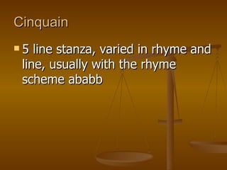 Structure of Poetry and Different Types of Stanza PPTX