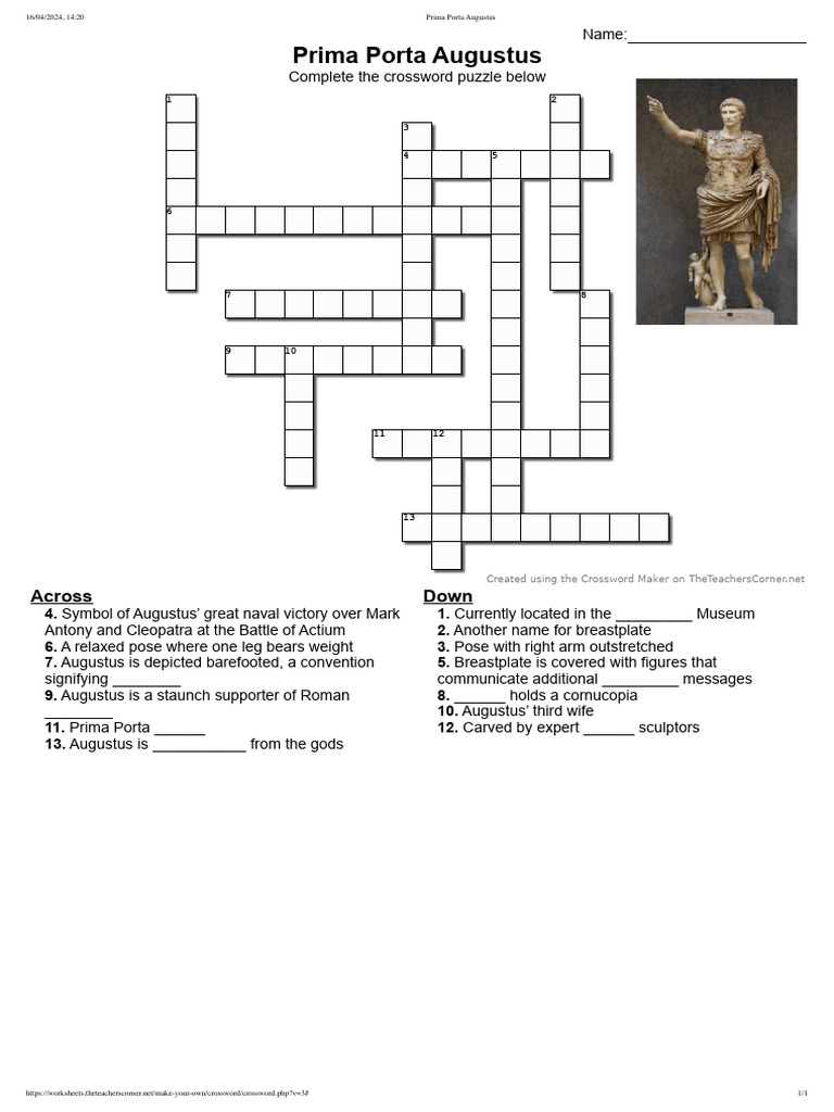 Prima Porta Augustus Crossword PDF Augustus Ancient Romans