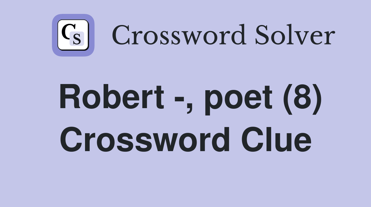 Robert poet (8) Crossword Clue Answers Crossword Solver