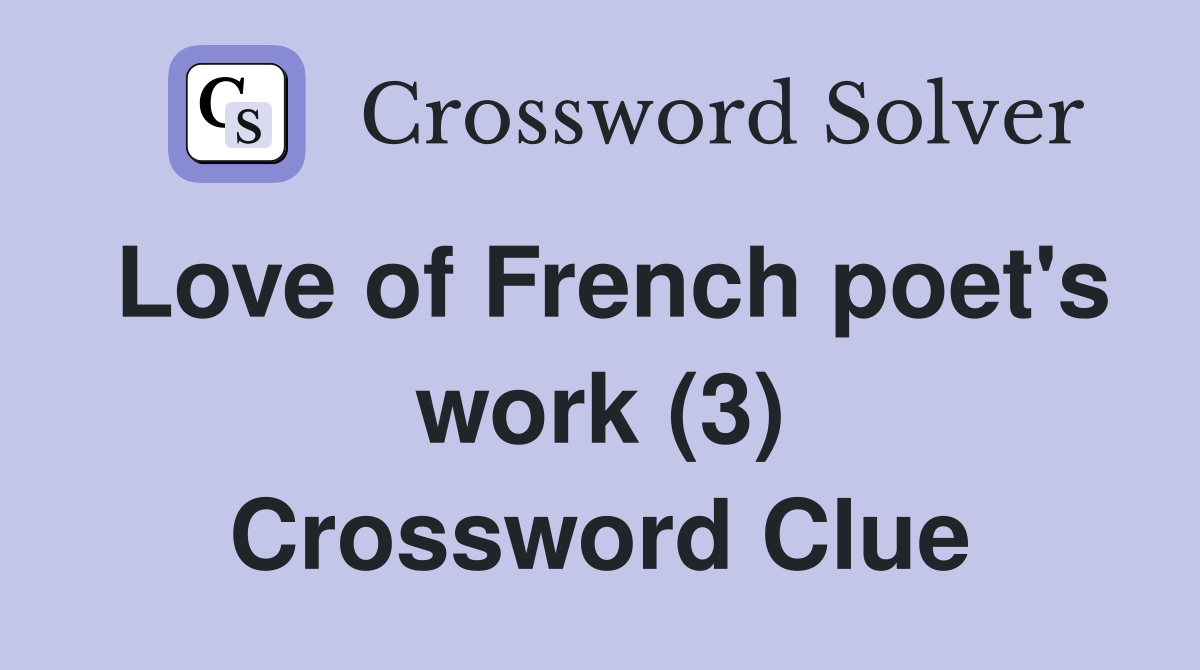 Love of French poet #39 s work (3) Crossword Clue Answers Crossword Solver