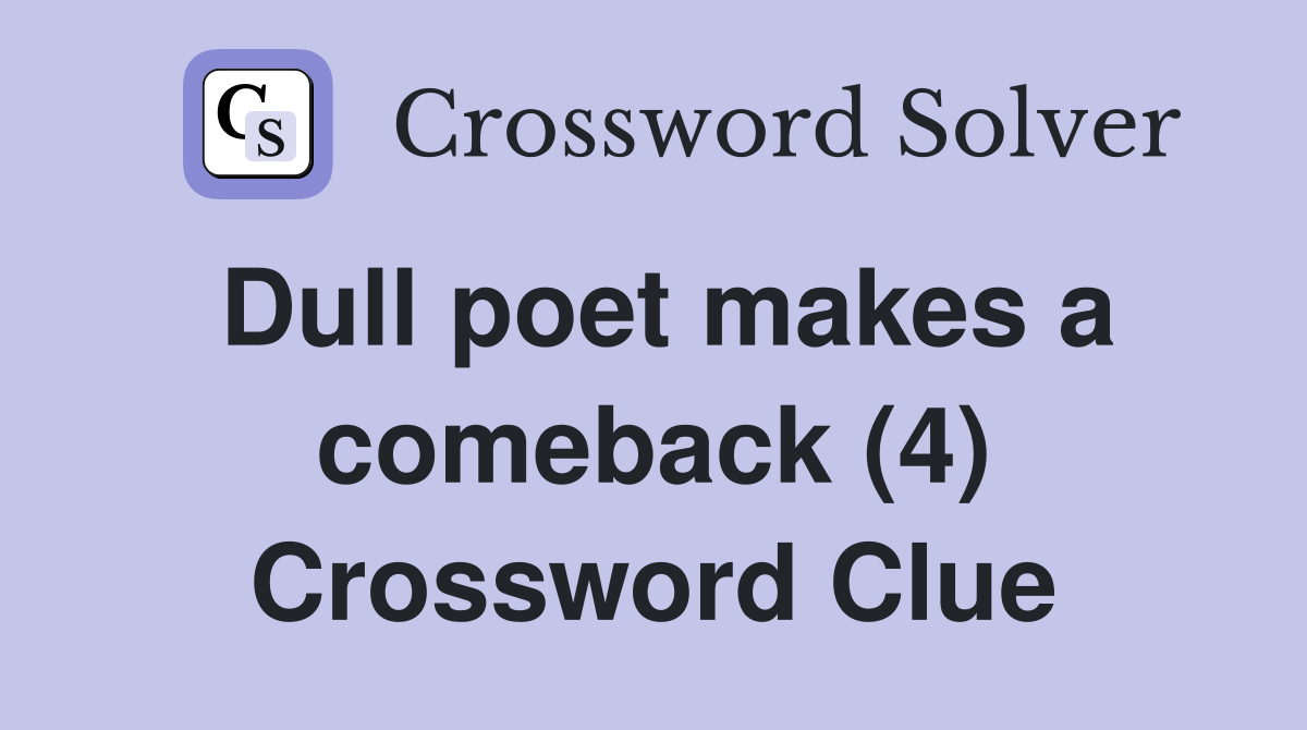 Dull poet makes a comeback (4) Crossword Clue Answers Crossword Solver