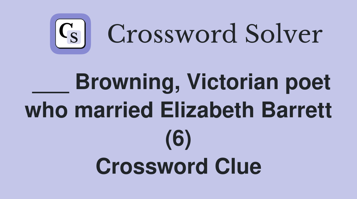 Browning Victorian poet who married Elizabeth Barrett (6) Crossword