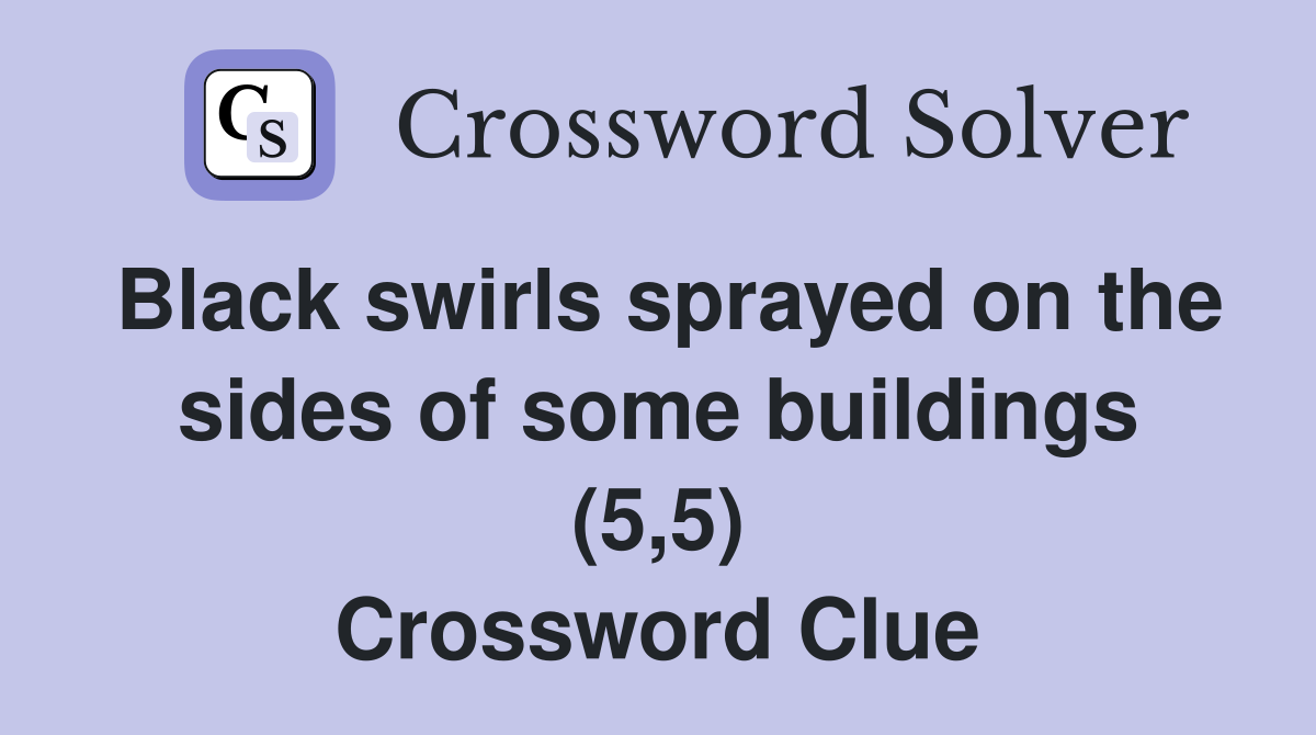 Black swirls sprayed on the sides of some buildings (5 5) Crossword