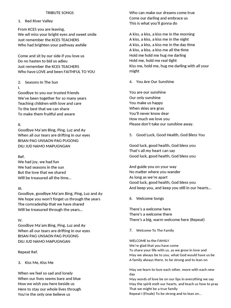 TRIBUTE SONGS PDF