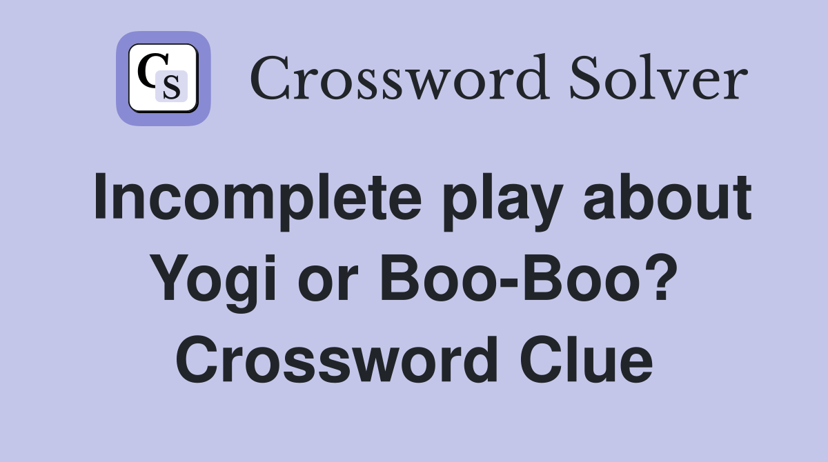 Incomplete play about Yogi or Boo Boo? Crossword Clue Answers