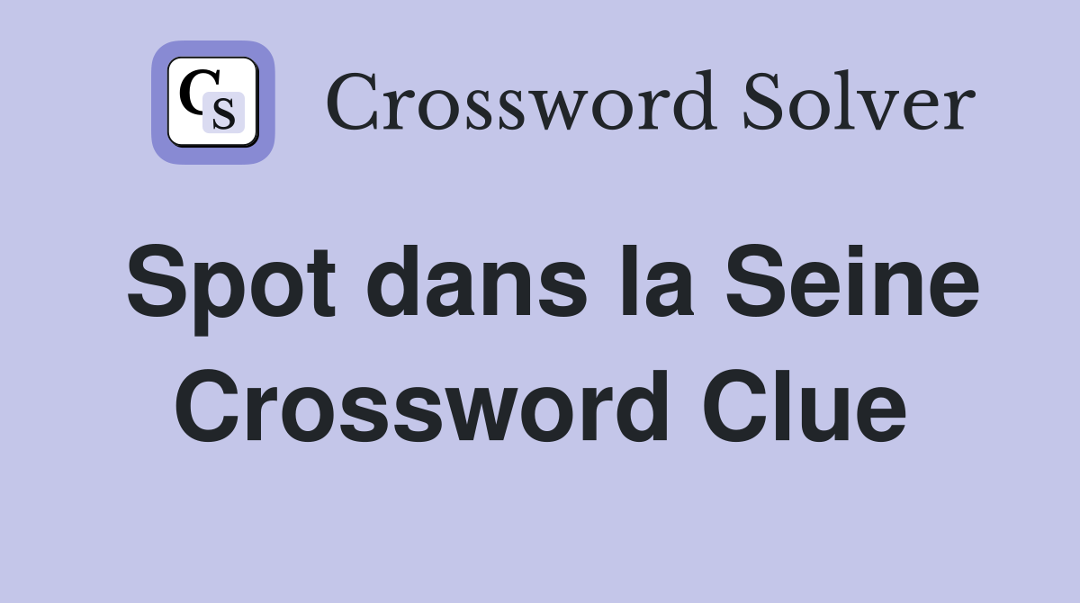 Spot dans la Seine Crossword Clue Answers Crossword Solver