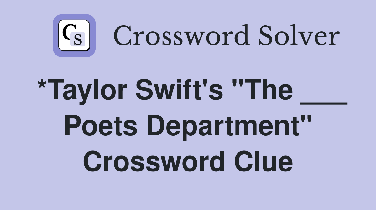 *Taylor Swift #39 s quot The Poets Department quot Crossword Clue Answers