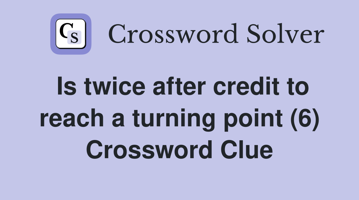 Is twice after credit to reach a turning point (6) Crossword Clue