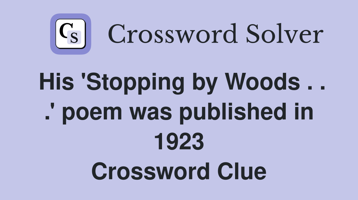 His #39 Stopping by Woods #39 poem was published in 1923 Crossword