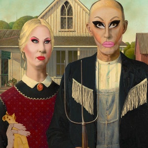 Digitaldruck Download Trixie und Katya in Grant Woods American Gothic