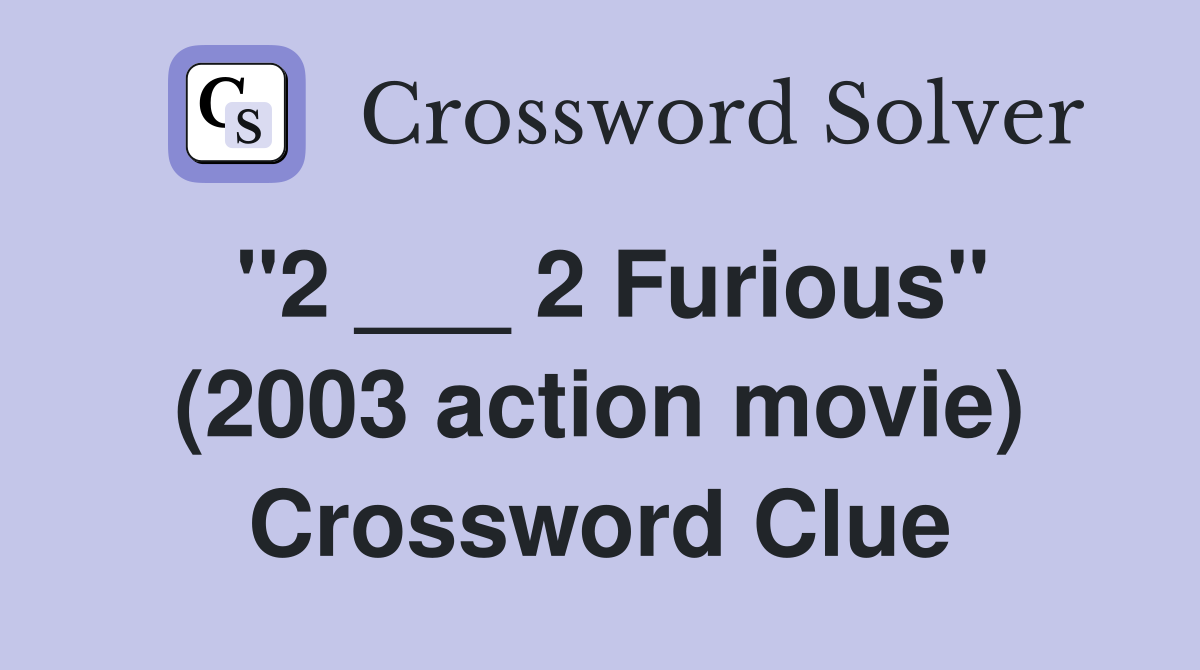 quot 2 2 Furious quot (2003 action movie) Crossword Clue Answers
