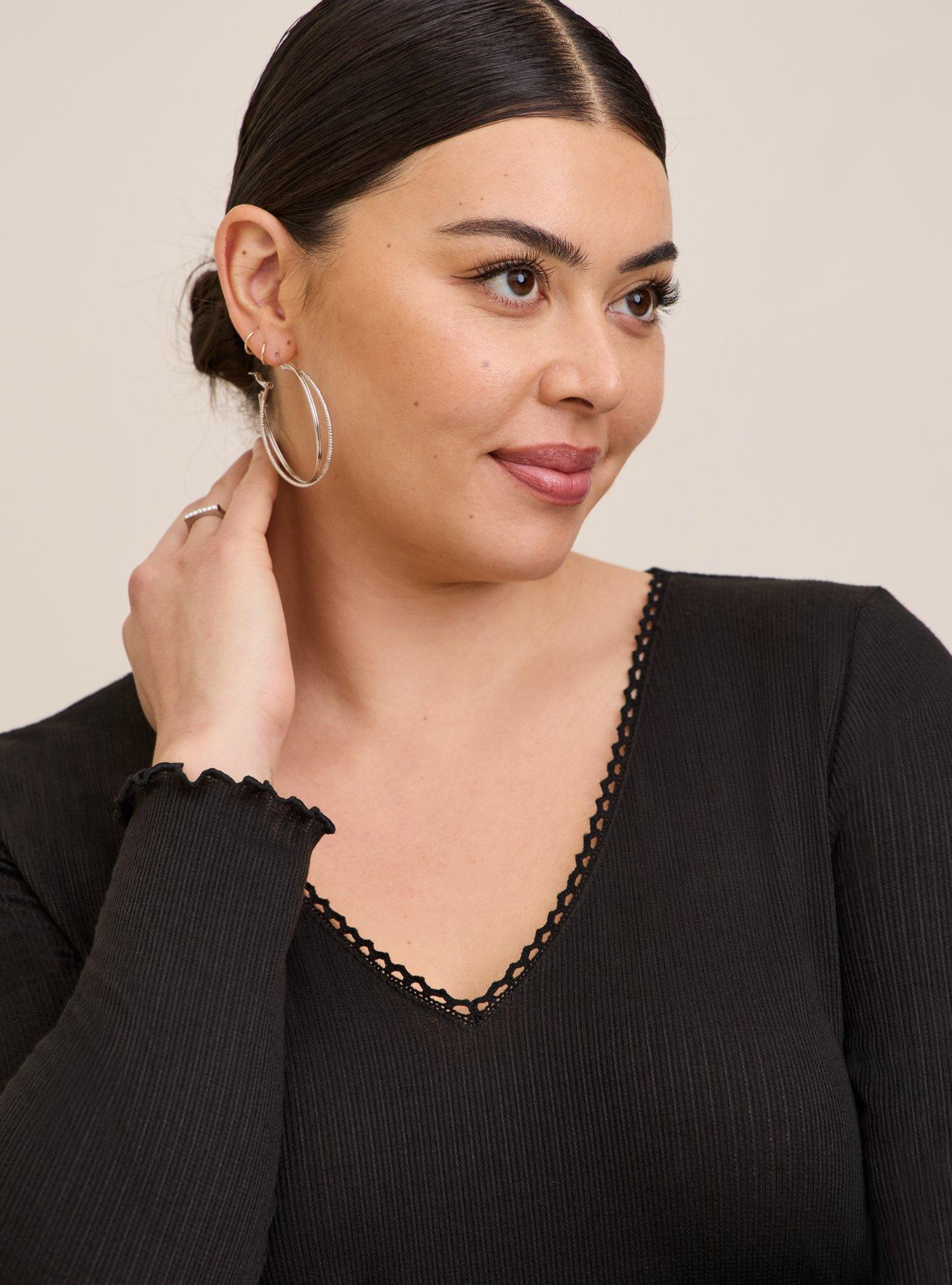 Plus Size Pointelle Rib V Neck Long Sleeve Crop Tee Torrid