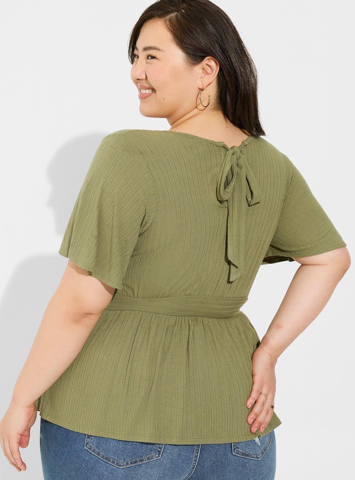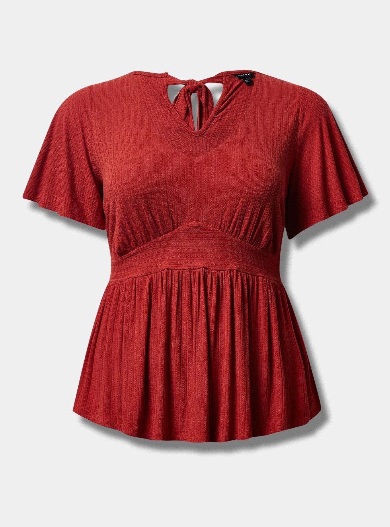 Plus Size Pointelle Rib V Neck Babydoll Top Torrid