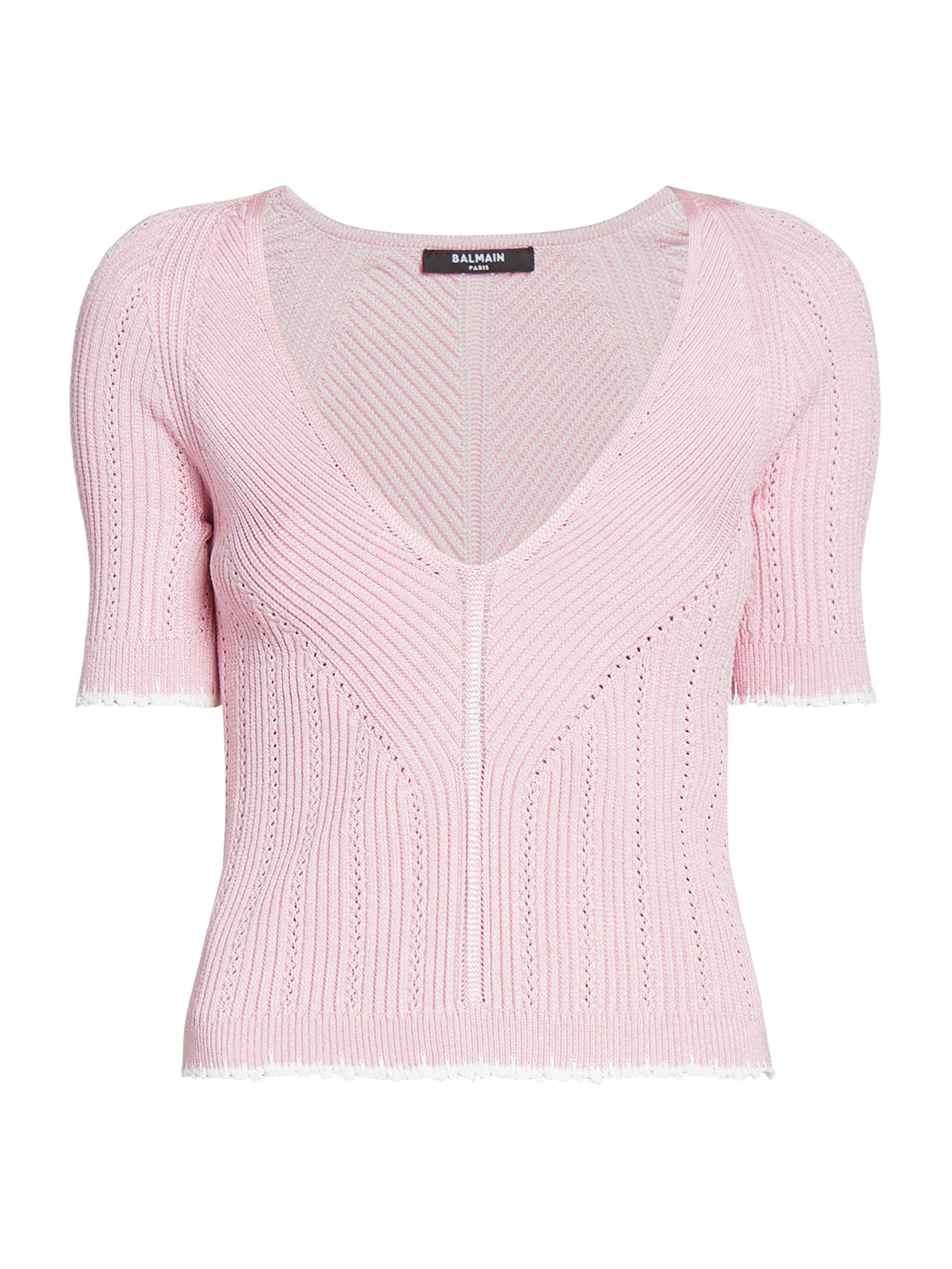 Balmain Buttoned Pointelle Rib Knit Crop Cardigan Neiman Marcus