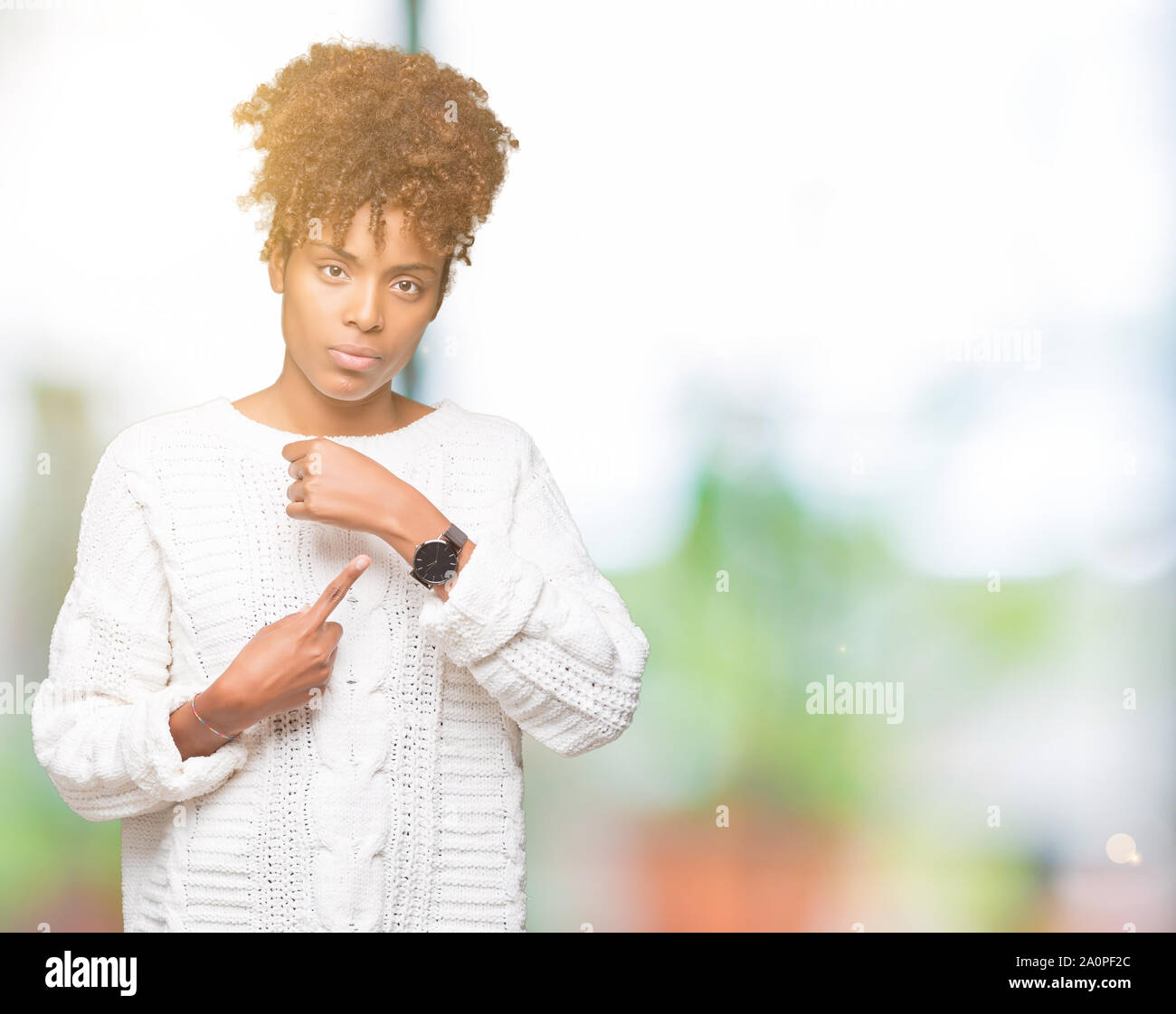 Beautiful young african american woman wearing winter sweater over