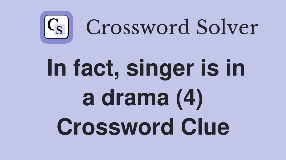 In fact singer is in a drama (4) Crossword Clue Answers Crossword
