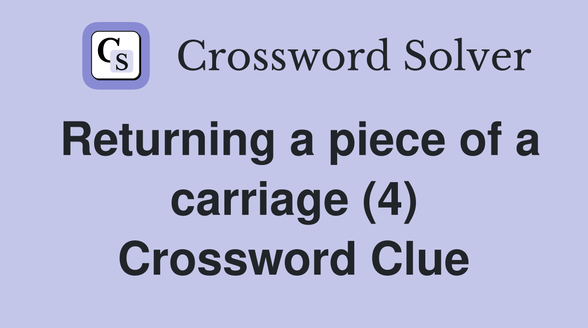 Returning a piece of a carriage (4) Crossword Clue Answers