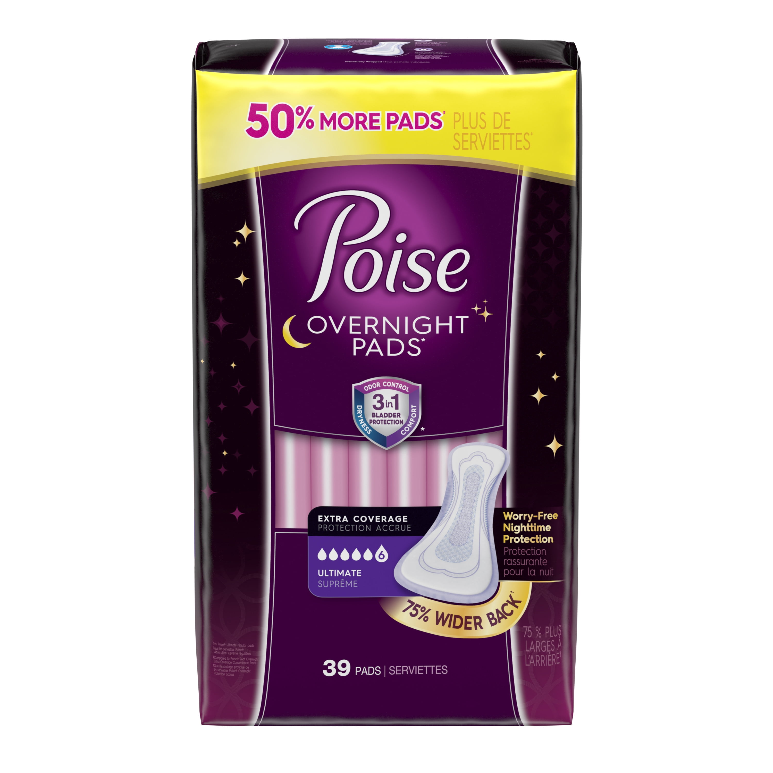 Poise Overnight Incontinence Pads Ultimate Absorbency 75% Wider Back