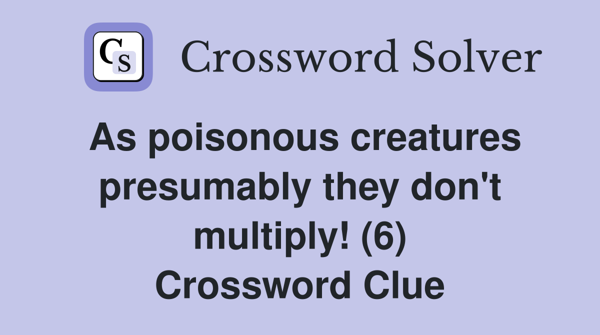As poisonous creatures presumably they don #39 t multiply (6) Crossword