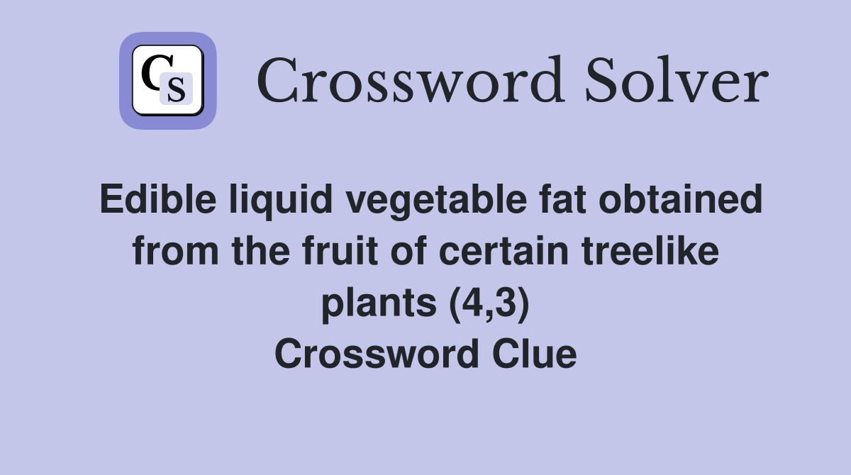 Edible liquid vegetable fat obtained from the fruit of certain treelike