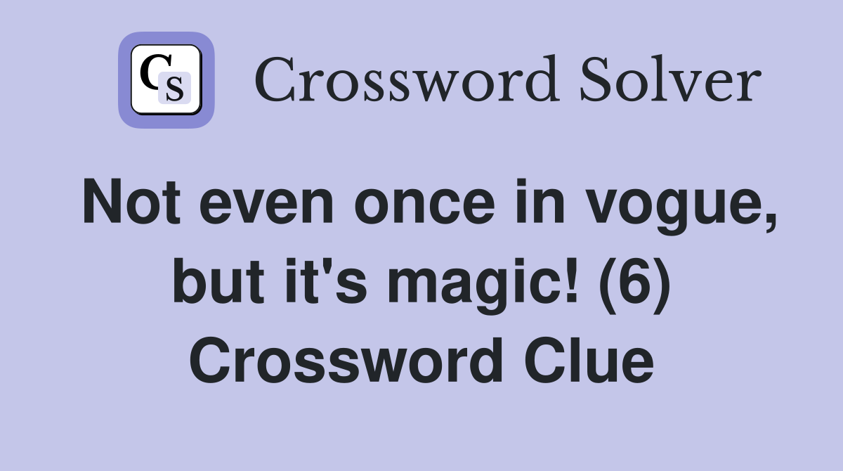 Not even once in vogue but it #39 s magic (6) Crossword Clue Answers