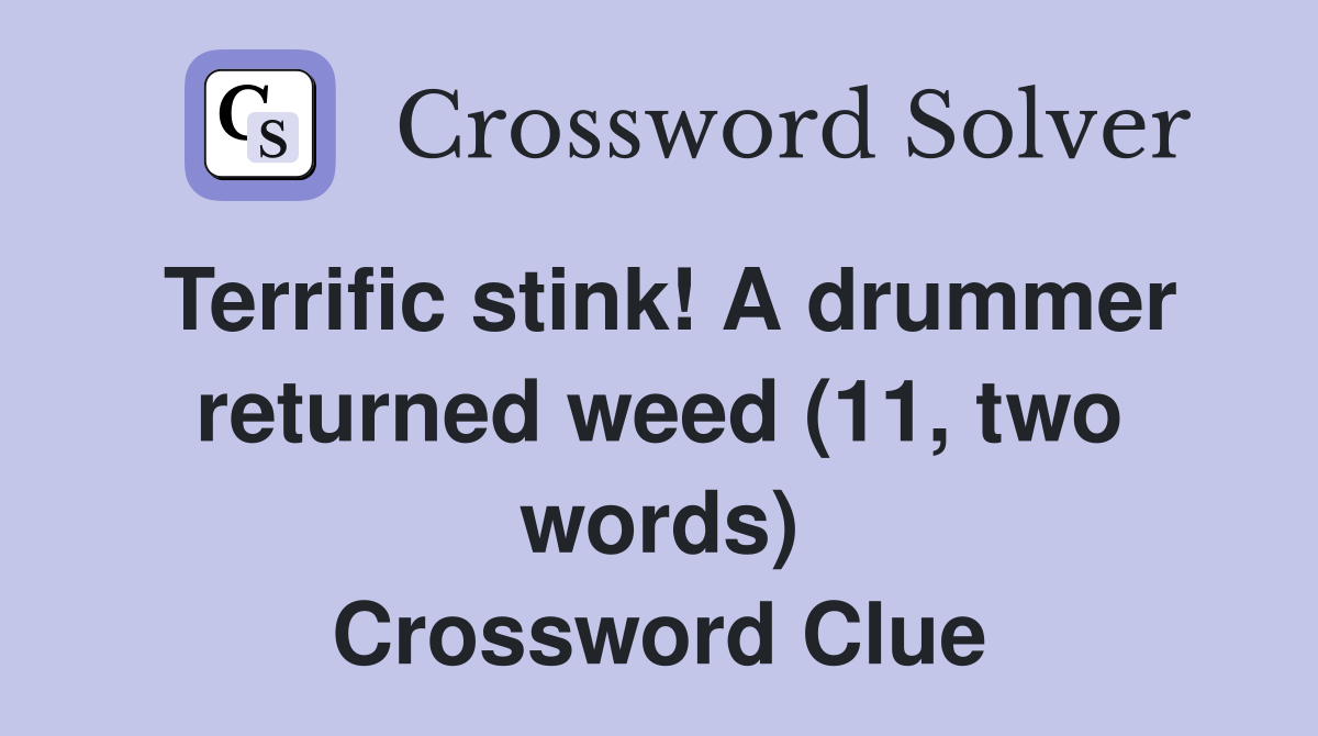 Terrific stink A drummer returned weed (11 two words) Crossword