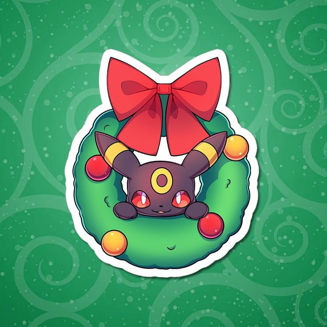 Umbreon Wreath Sticker Pokemon Holiday Decal Cute Kawaii Christmas