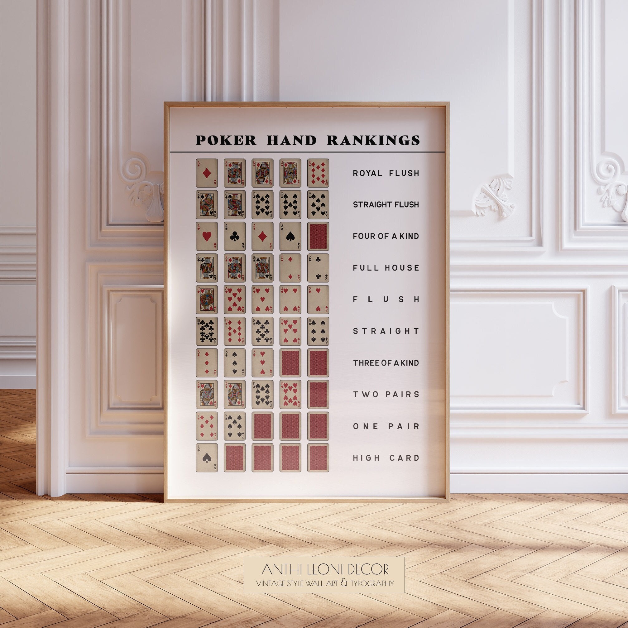 Poker Hand Ranking Poster Instant Digital Download Perfect for