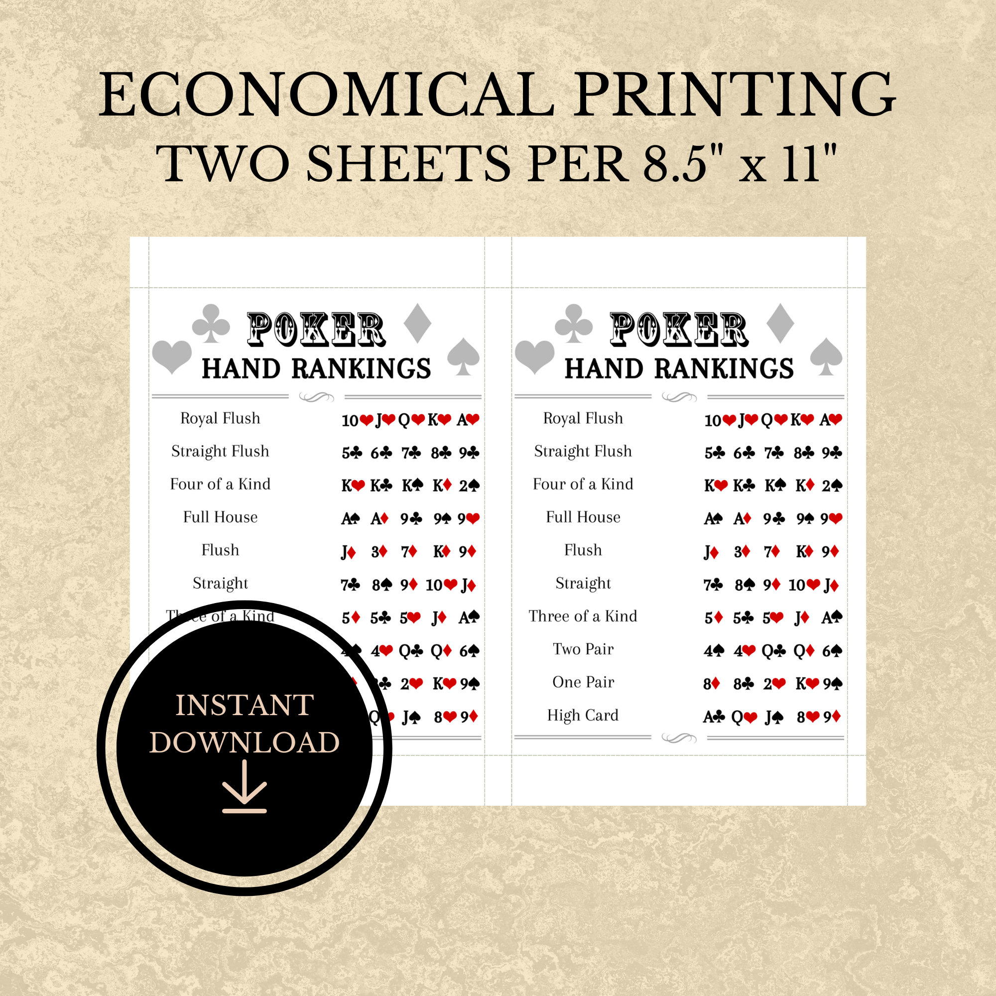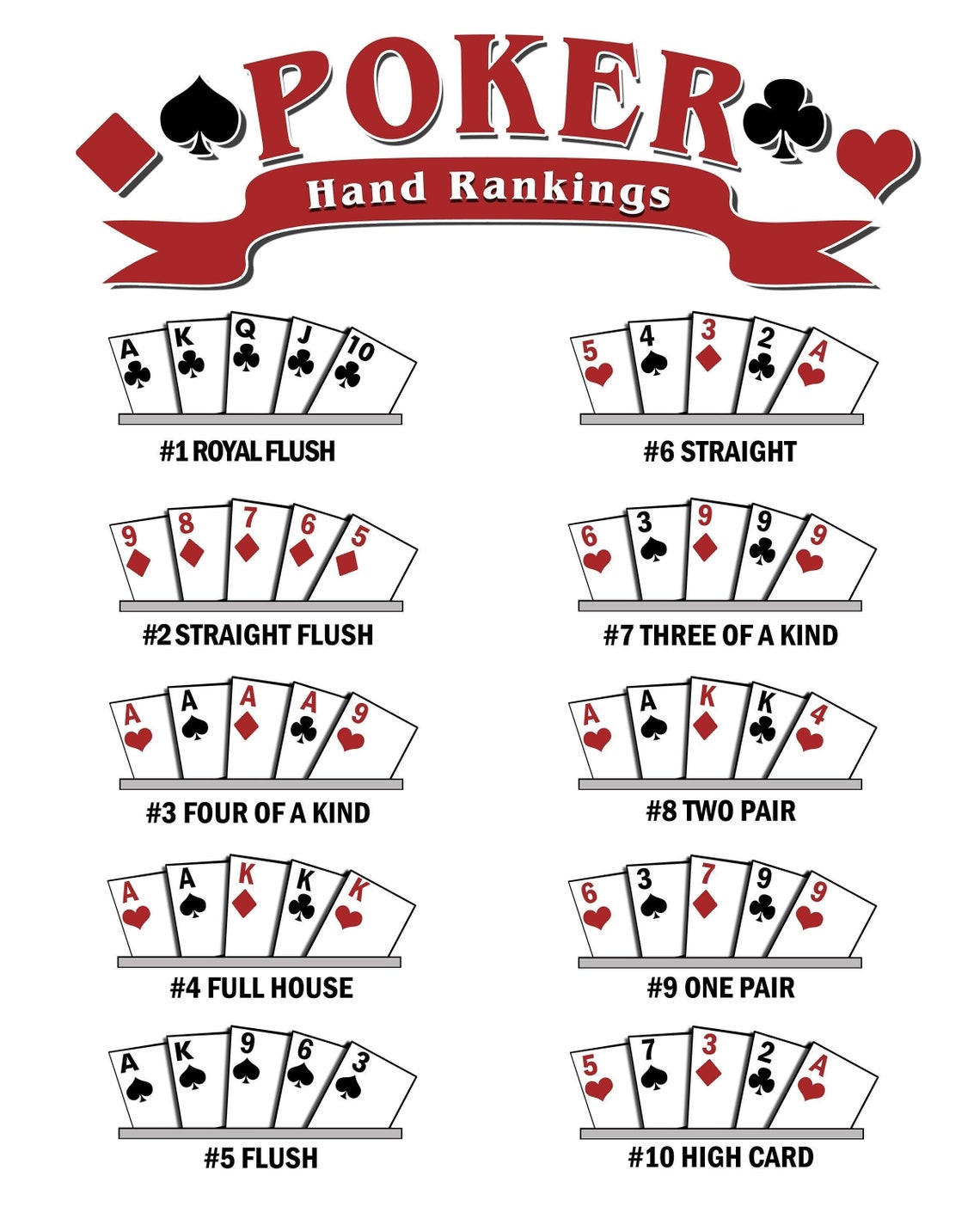Poker Hand Ranking Cheat Sheet Print Out Instant Download Etsy