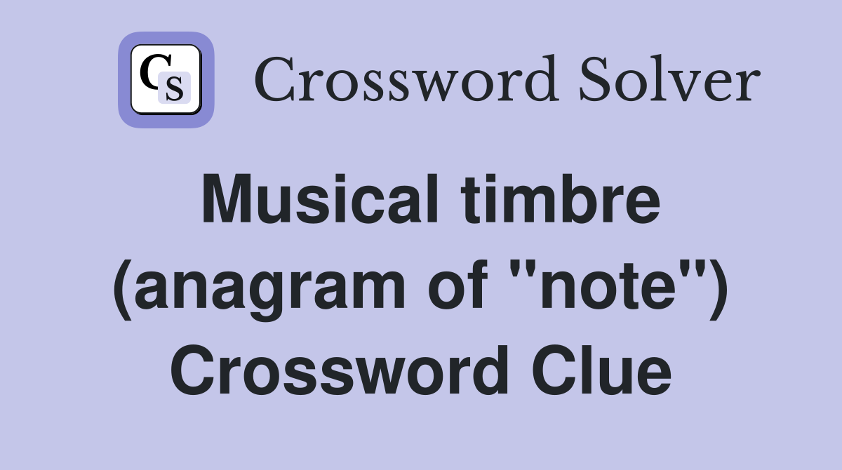 Musical timbre (anagram of quot note quot ) Crossword Clue Answers Crossword