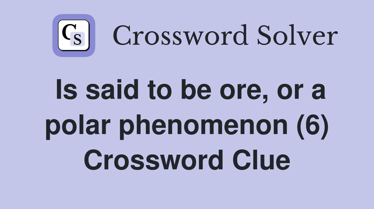 Is said to be ore or a polar phenomenon (6) Crossword Clue Answers
