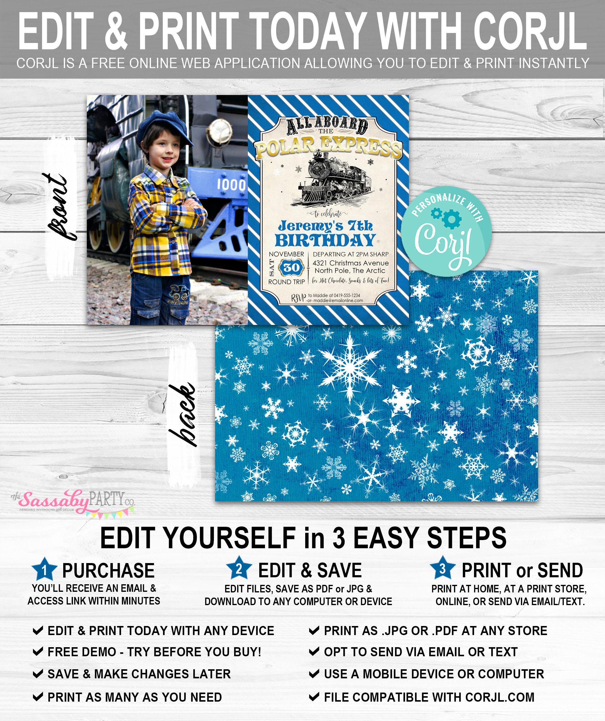 Polar Express Invitation INSTANT DOWNLOAD Partially Editable