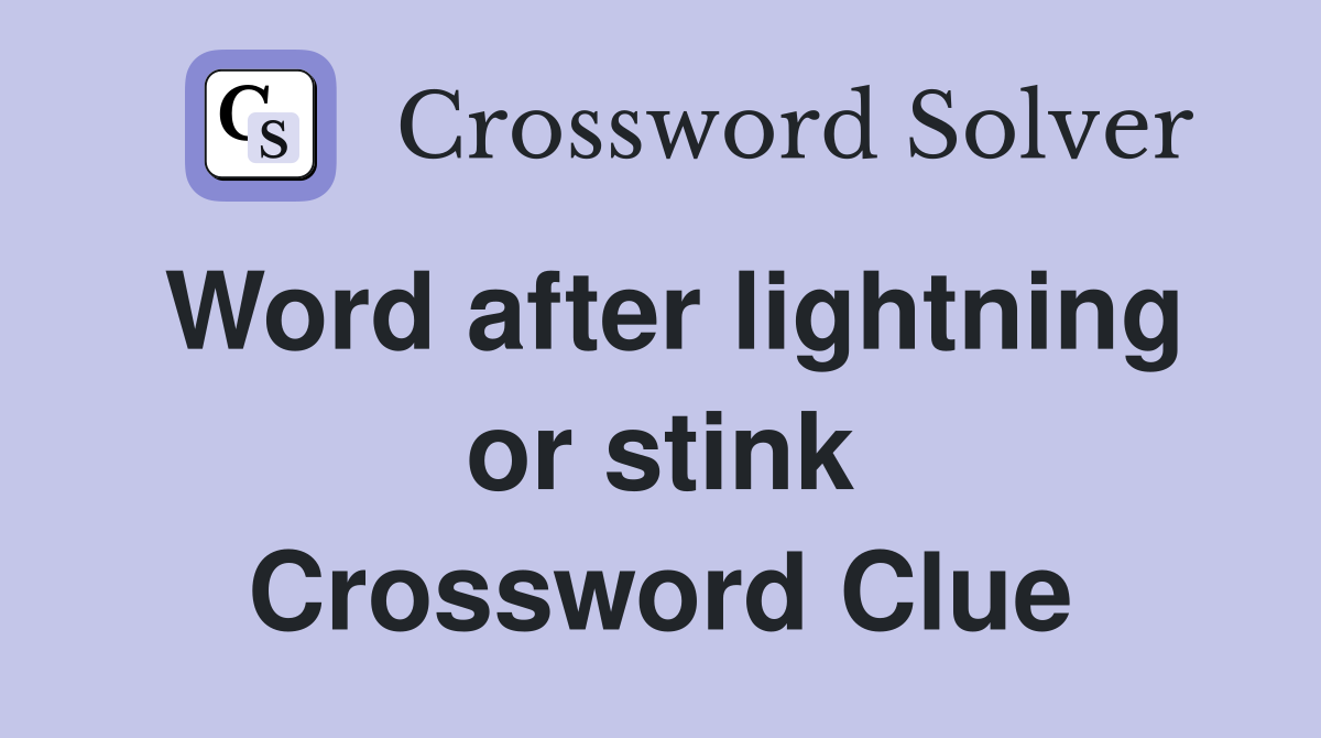 Word after lightning or stink Crossword Clue Answers Crossword Solver