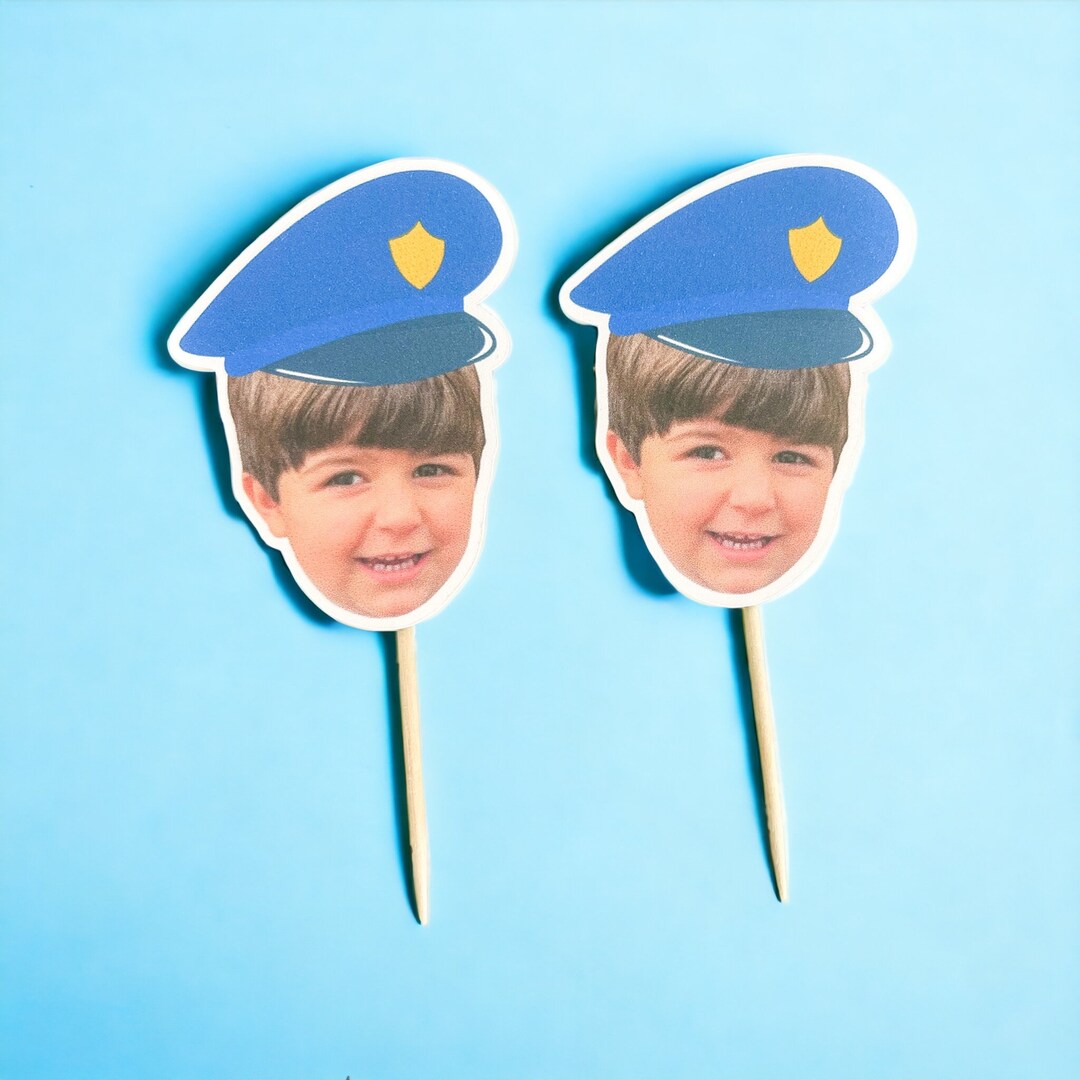 Police Party Cupcake Toppers cupcake Toppers Photo Head First Birthday