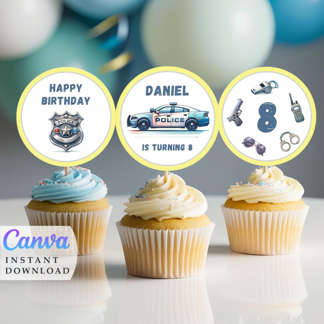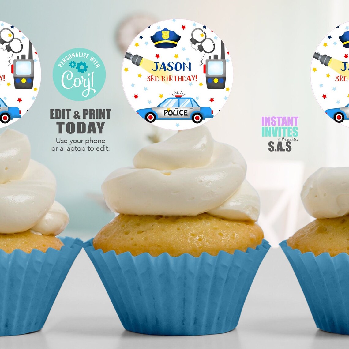 Police cupcake toppers photo cupcake toppers printable etsy Artofit