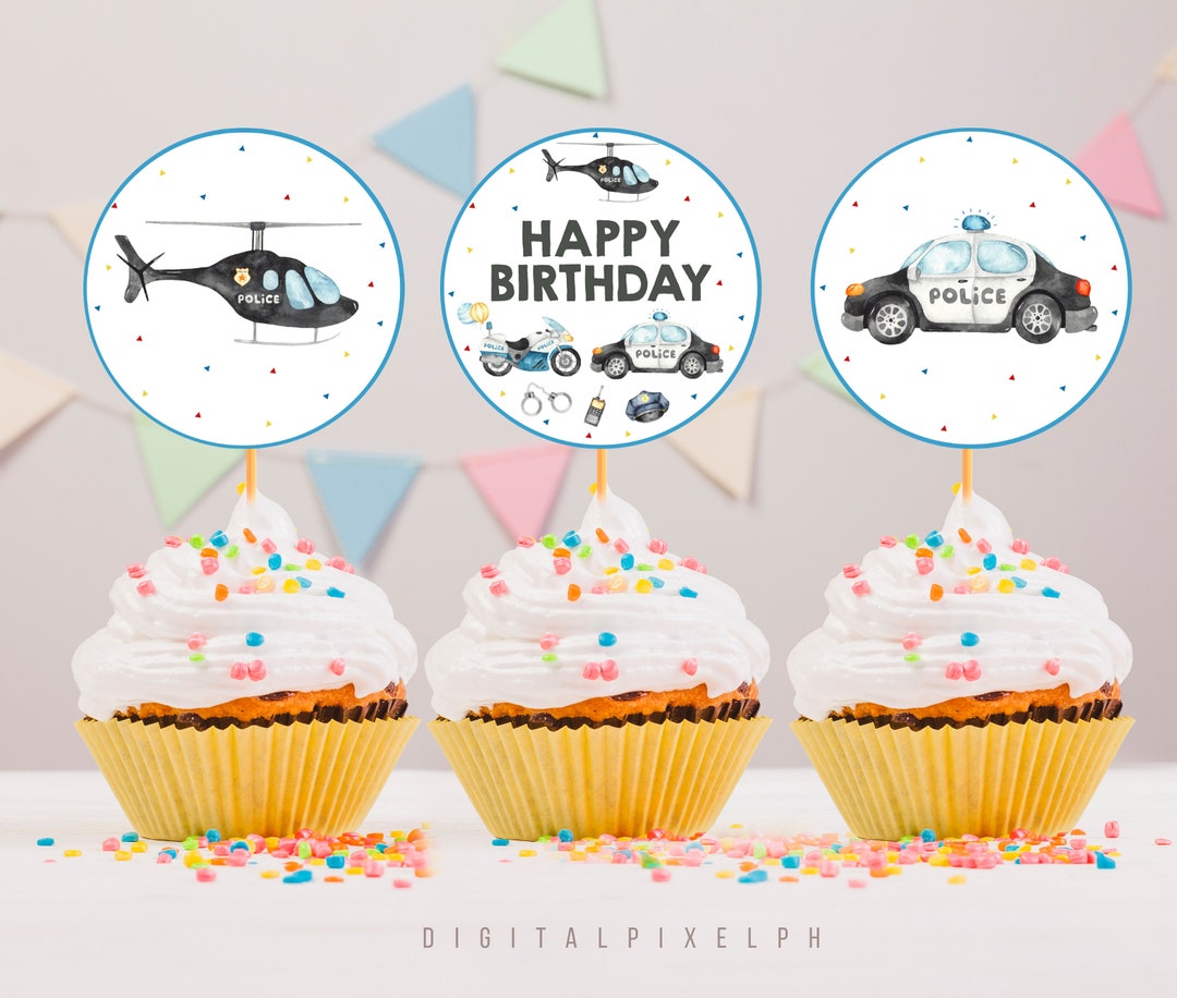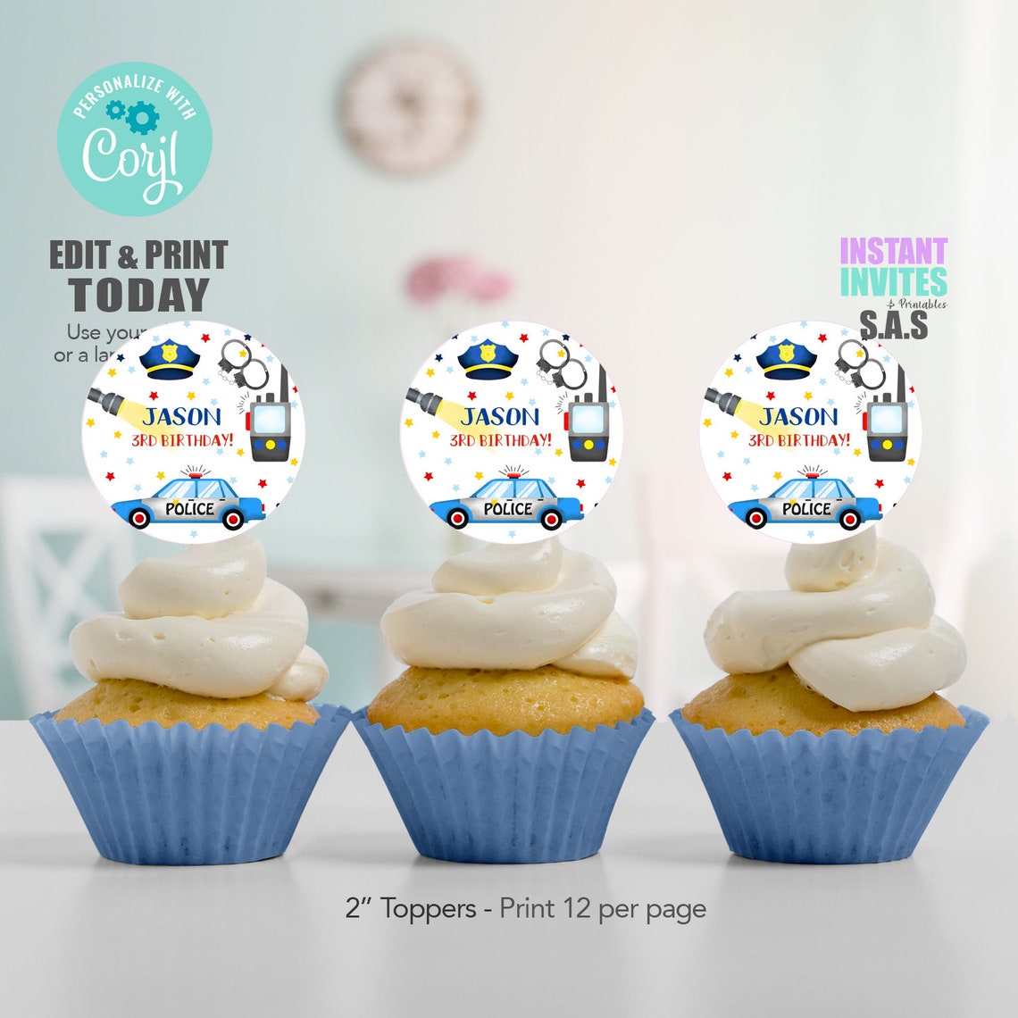 Police Toppers Police Cupcake Toppers Police Birthday Etsy