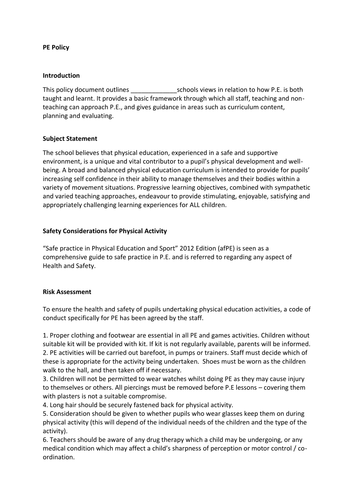 P E policy template Teaching Resources