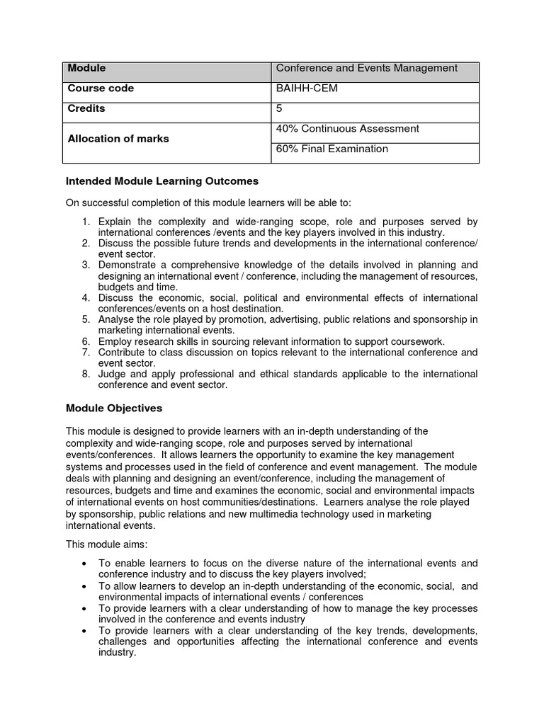 Conference and Events Management PDF Learning Marketing