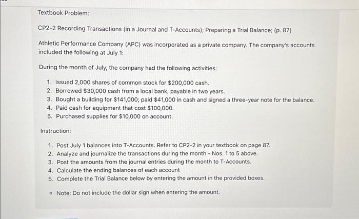 Solved Textbook Problem: CP2 2 Recording Transactions (in a Chegg com