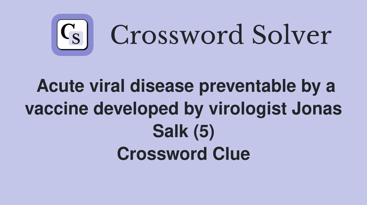 Here are some of the images for Polio Vaccine Developer Crossword Clue that we found in our website database.