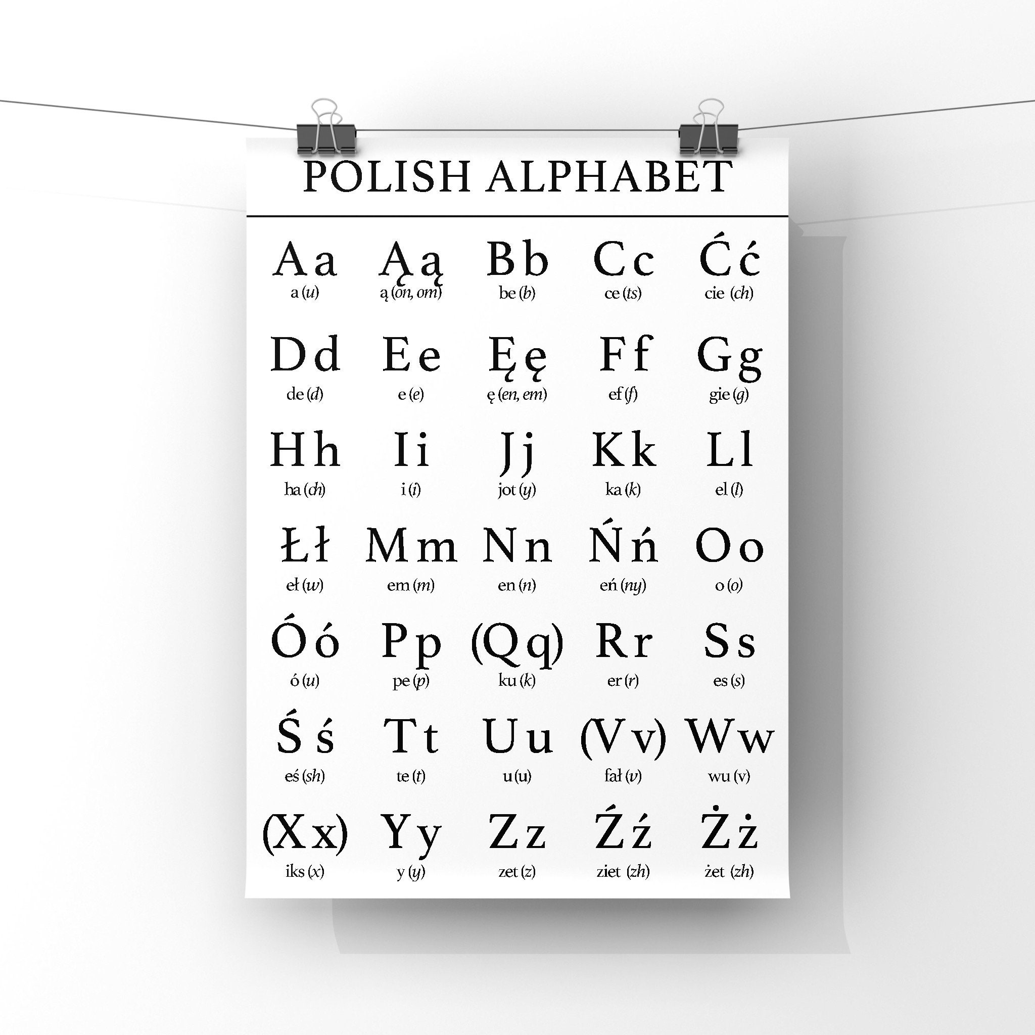 Polish Alphabet Letters Chart Poster Print Polski Language Etsy Israel
