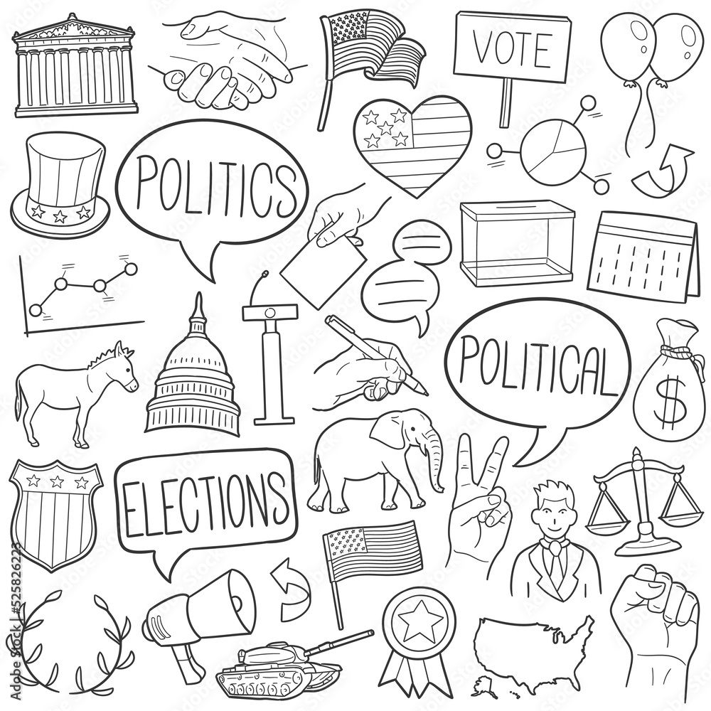 Political Doodle Icons Hand Made Line Art Politics Clipart Logotype