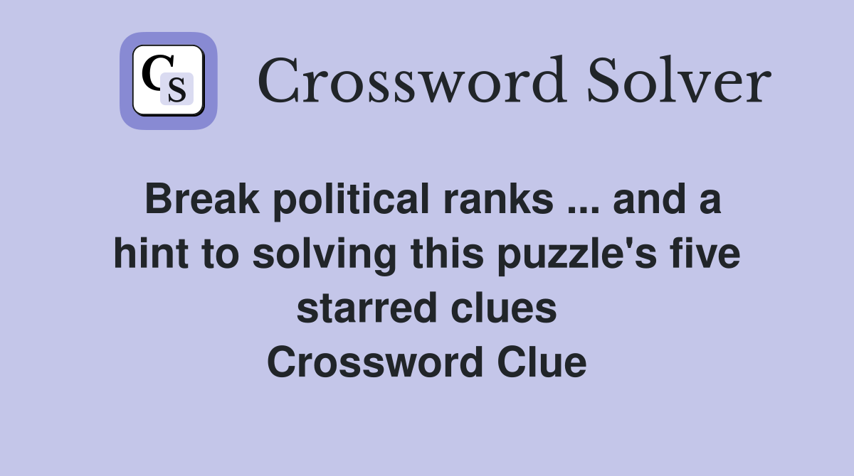 Break political ranks and a hint to solving this puzzle #39 s five