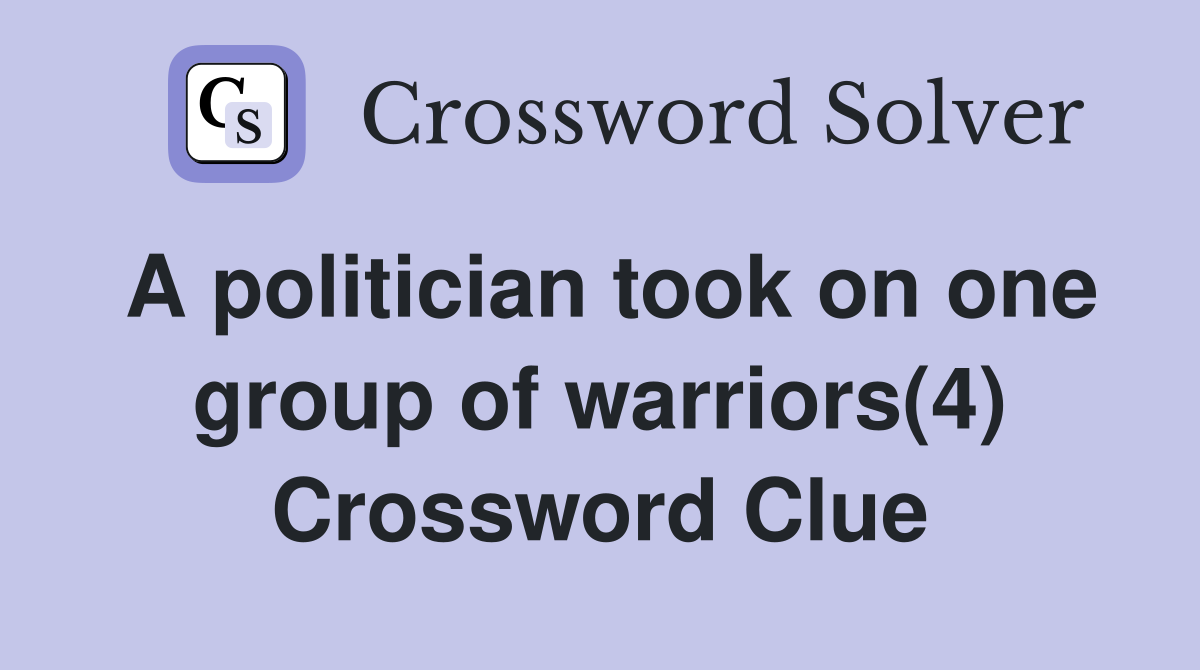 A politician took on one group of warriors(4) Crossword Clue Answers
