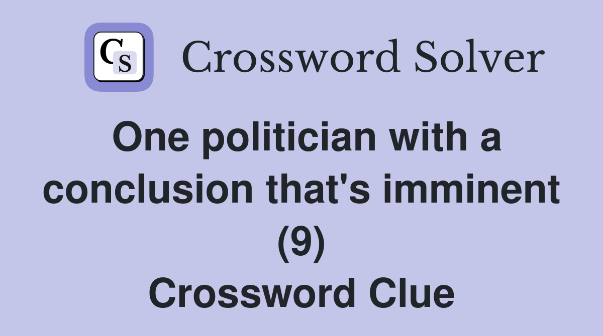 One politician with a conclusion that #39 s imminent (9) Crossword Clue